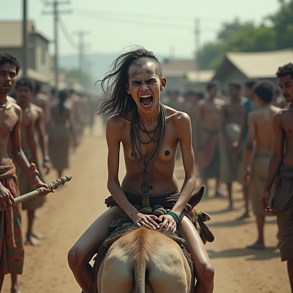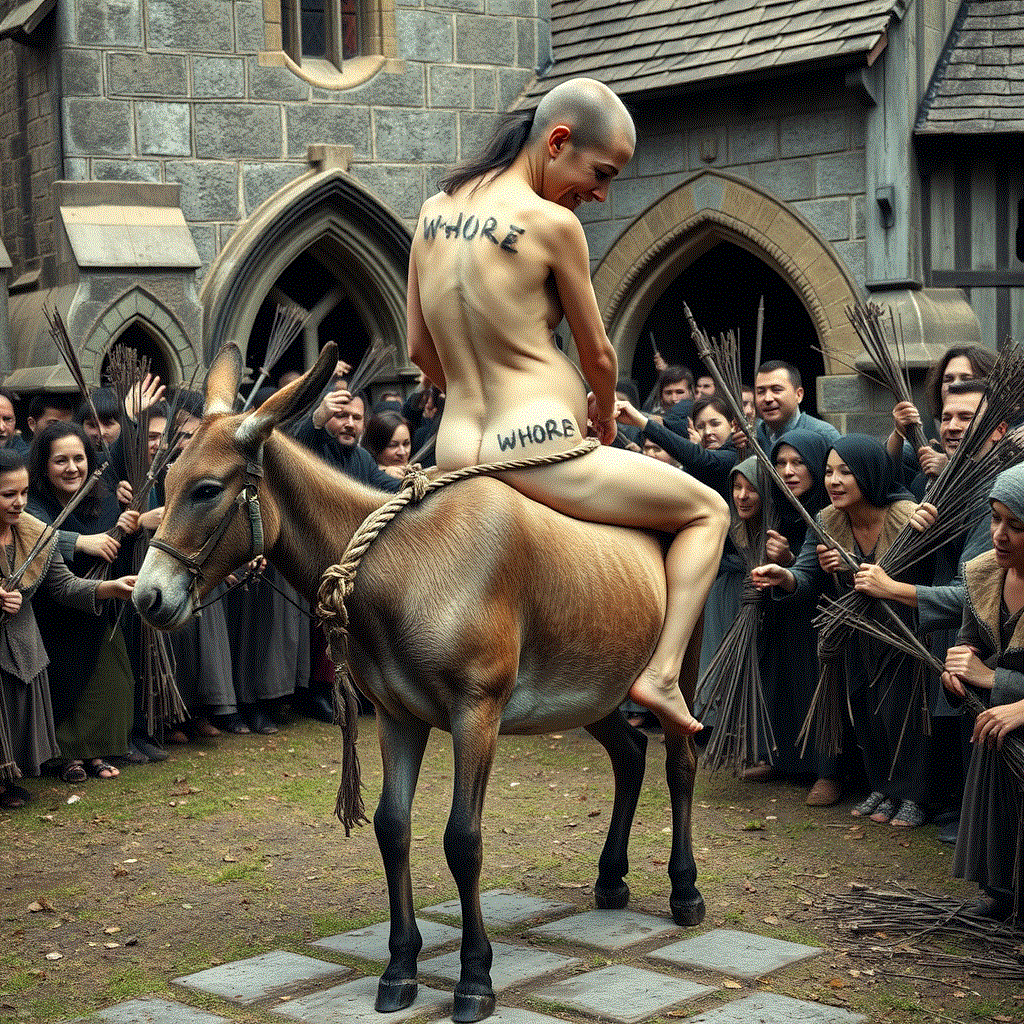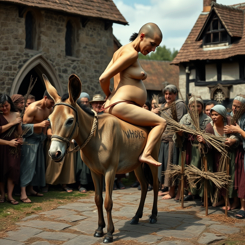 Pregnant out of wedlock. Her neighbors parade her through the streets on the back of a donkey.