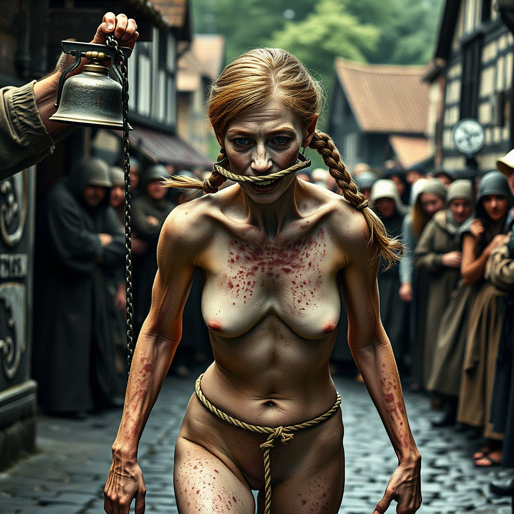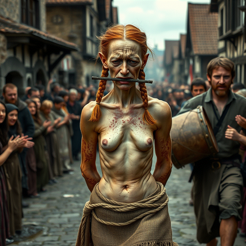 Stumbling through the streets amid the jeers of the crowd.