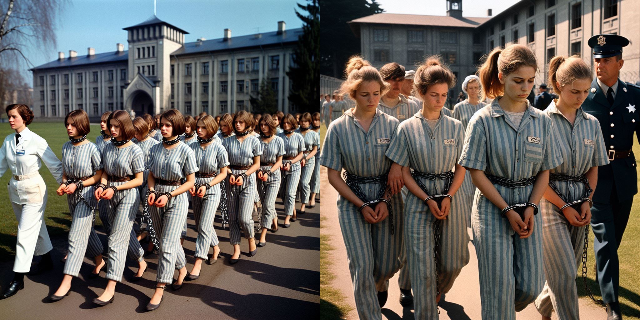 Interestingly, the two 'assistants' are more than likely two longer serving subjects who have been permitted to work at the facility. Judging from their slight awkwardness it would appear that way.