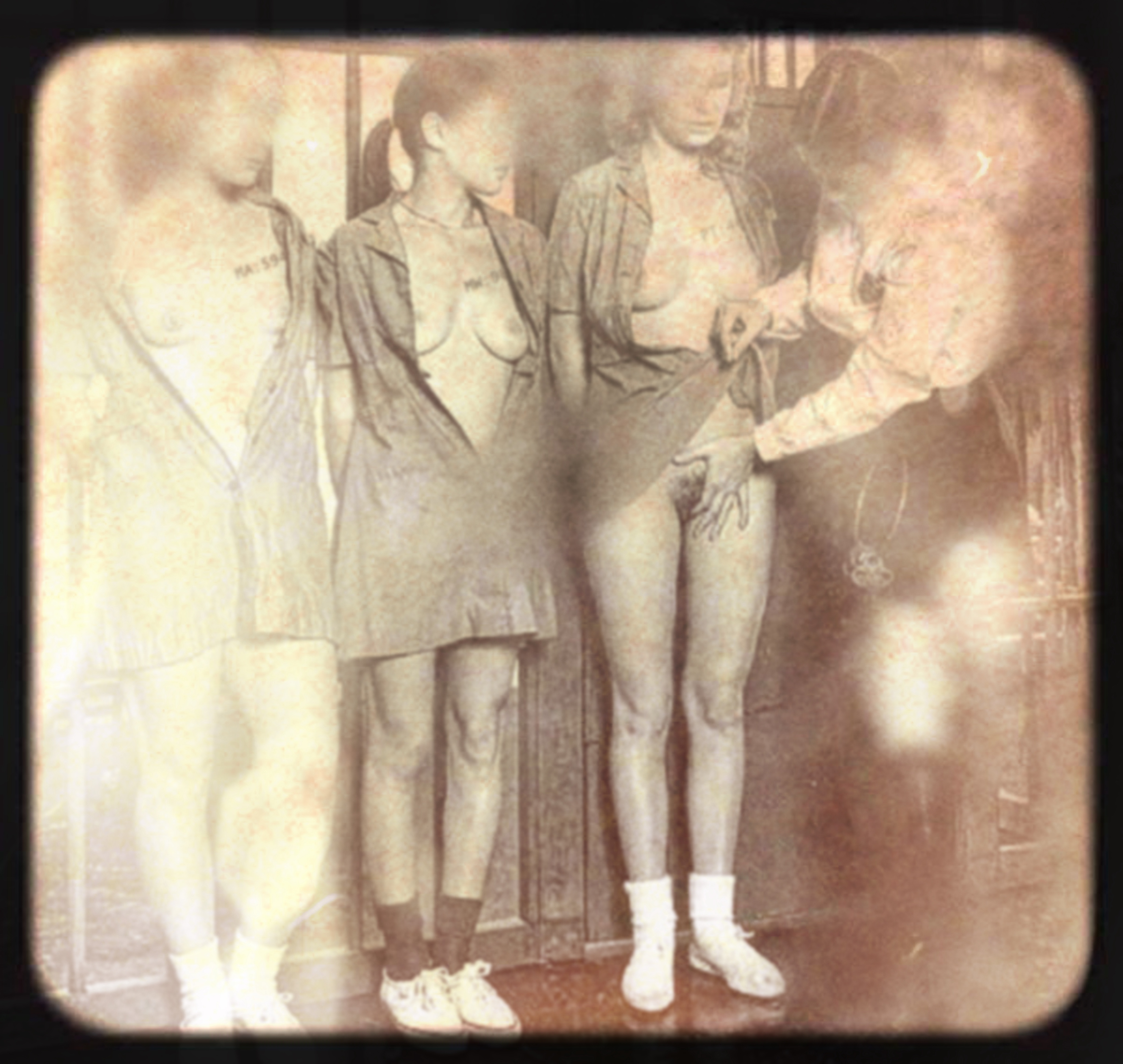 This is thought to be a photo taken by a staff member of a subject being returned to a cell after 'treatment'. It is unclear if she receives any medical attention at this point.