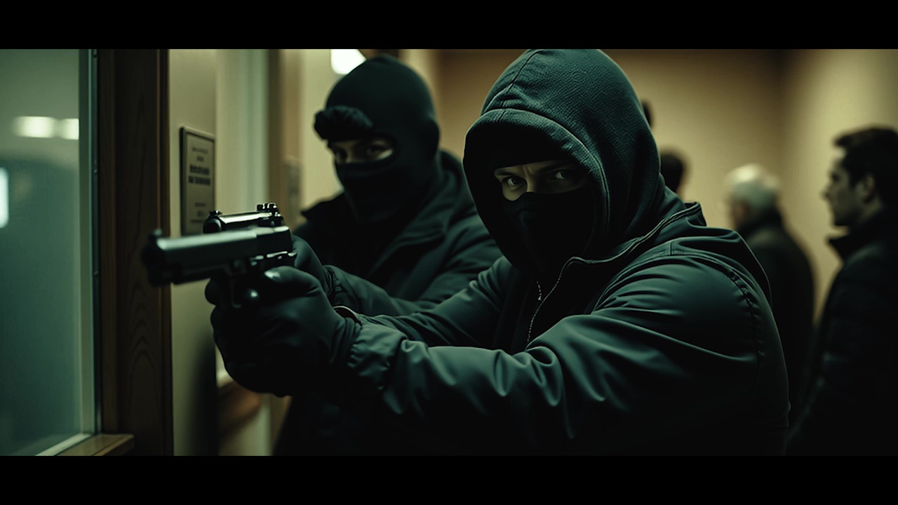 A gorgeous blonde bank manager, is kidnapped while working in a New York bank office.