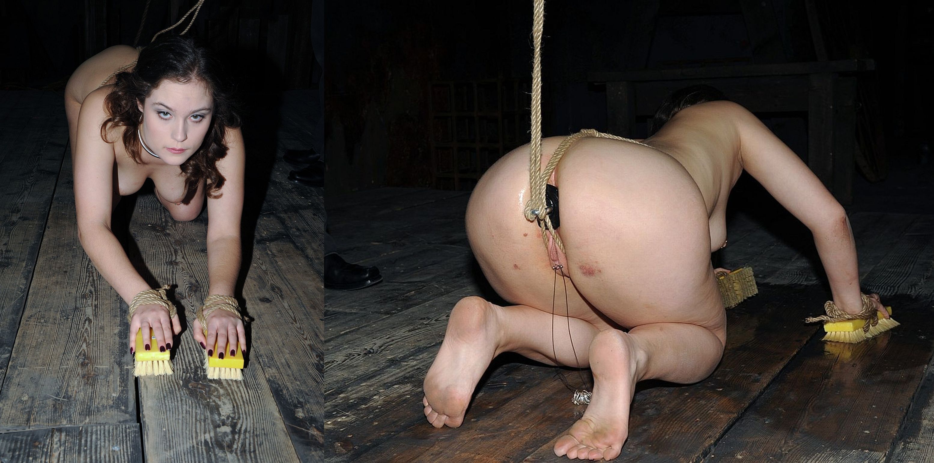 Daily floor cleaning duties for the slave.