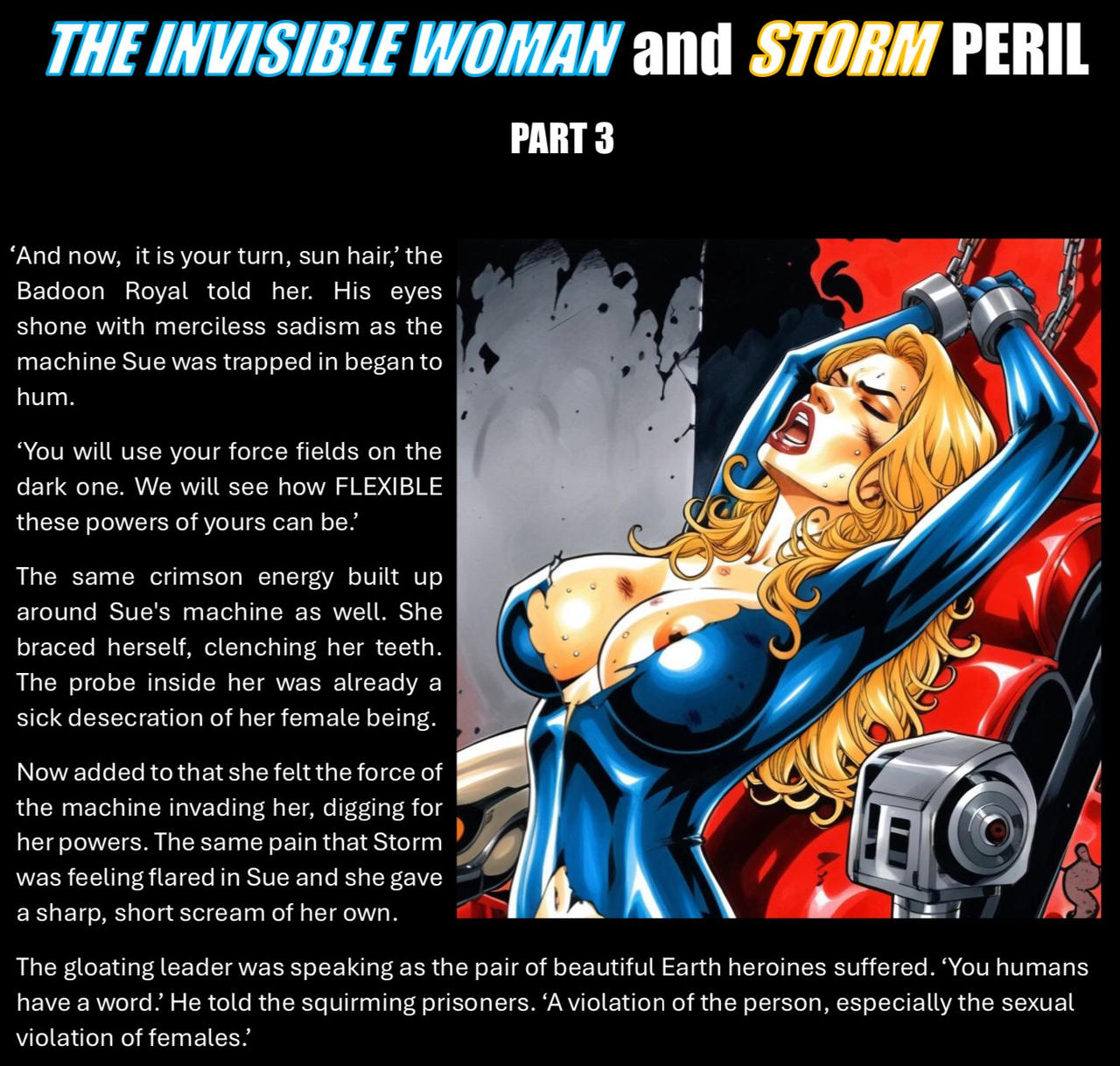 A series of PERIL PARODIES dedicated to the winning category of our MAY MEMBERS POLL. Inspired by scenes and stories where super hot lady heroes are captured, stripped, TORTURED AND VIOLATED in the most HEINOUS WAYS.