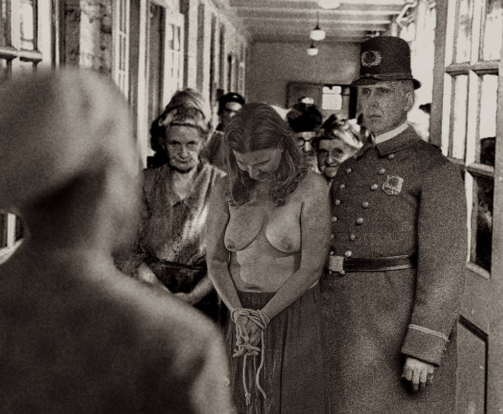 I particularly like the way she is prepared. He pulls down the top of her smock with a jolt to reveal just enough side boob.