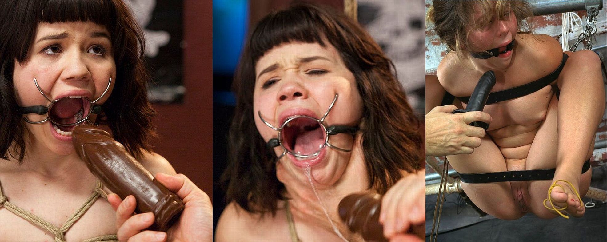 The following selected pics are good illustrations of the many uses of the ring gag, and you may also notice that none of these bitches seems to appreciate this accessory.