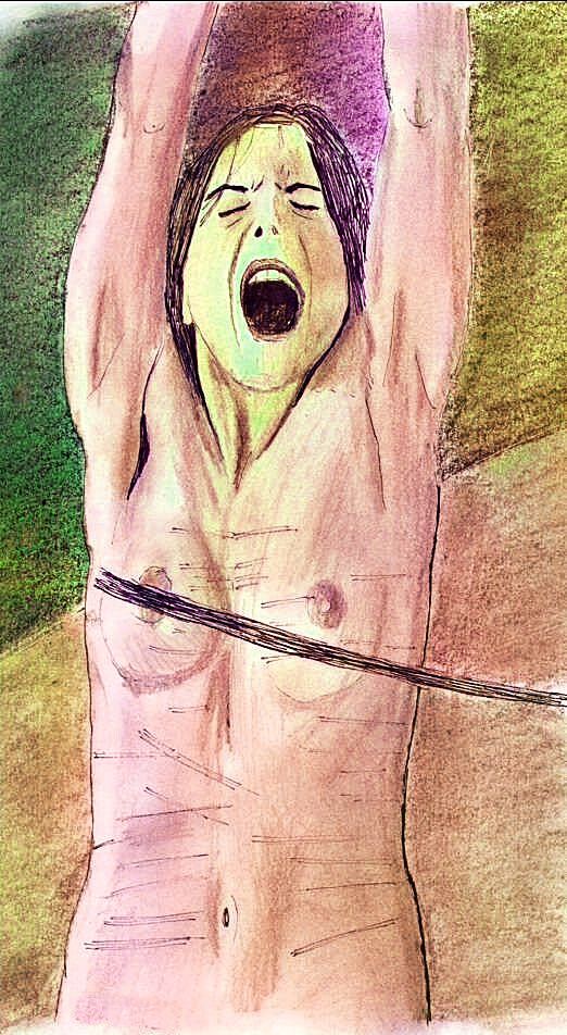 The whip should really mark them. The marks fade, but she feels pride seeing them, even though she begged him to stop.