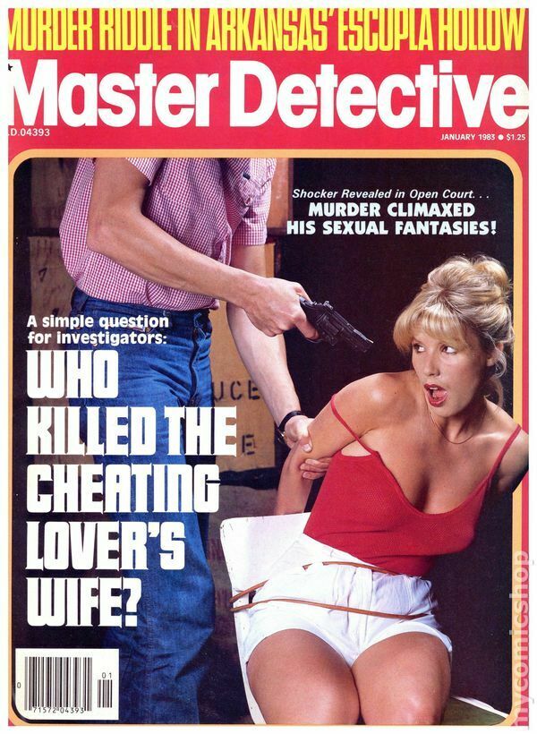How it started, how it's going. The stunning blonde cover girl on the January, 1983 Master Detective... she was discovered as an informant for her organization and secured for "questioning." Her shirt was cut open to persuade her to discuss what information she provided. Once personnel were satisfied that all information had been obtained from her, she was eliminated.