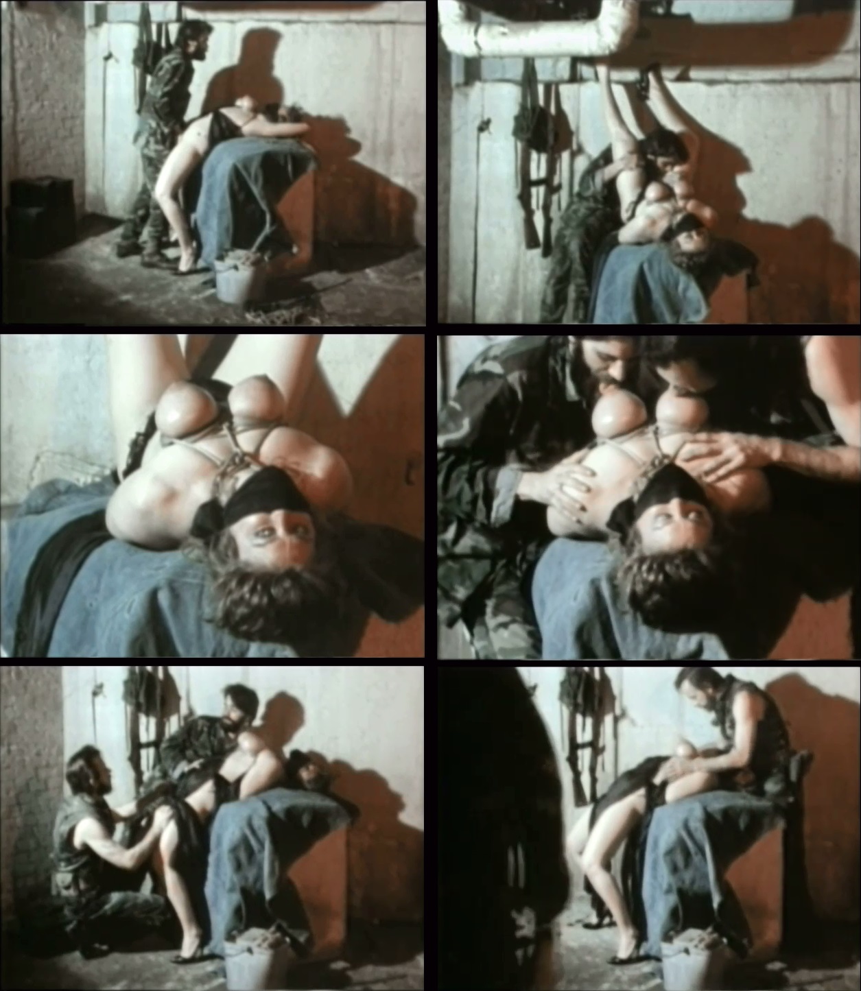Here are some shots of a woman called (I think) Sybil Lake who was made to suffer terribly in Tourist Trap. This is my favourite scene where she's been hoisted up into a painful back-breaking arch via a cruelly positioned crotch rope....