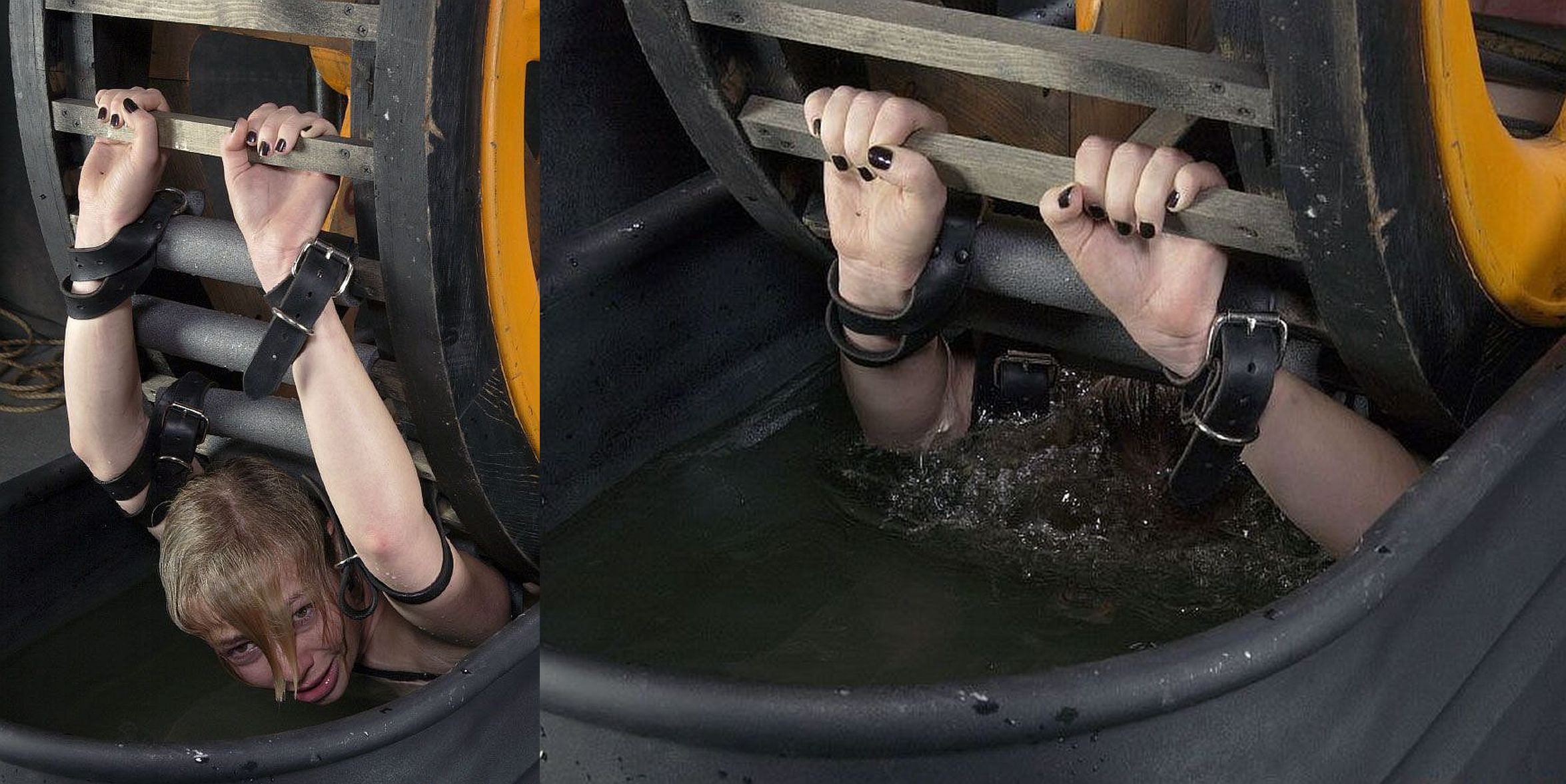 Two versions, the first and original, and the second, edited one, where the woman on the wheel is only subjected to water torture. By artist DirtierEddy.