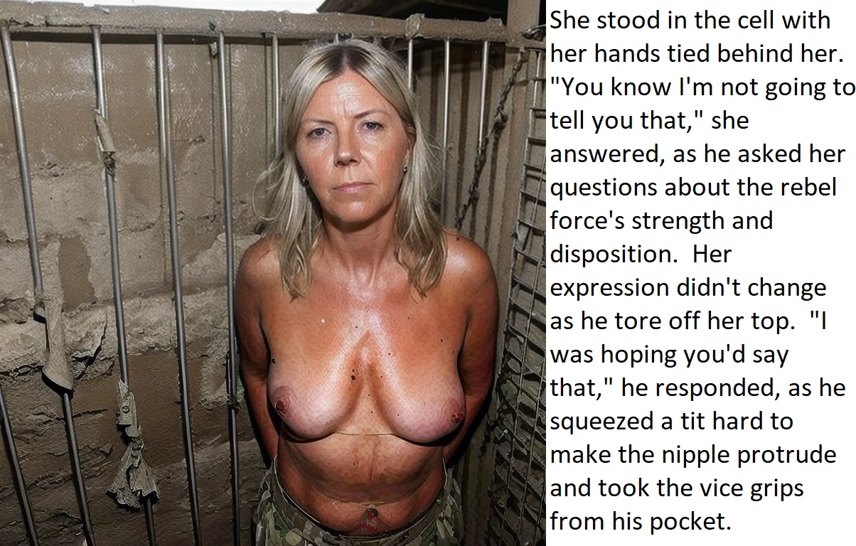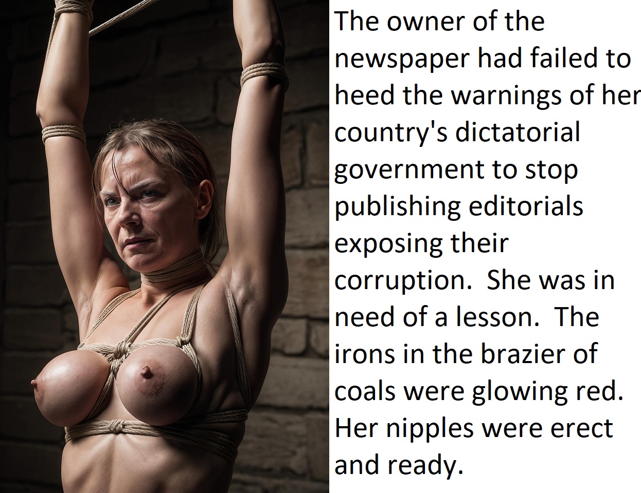 Very, very nice. They should work on her nice tits for a while before resorting to the hot irons. I mean, what's the hurry.