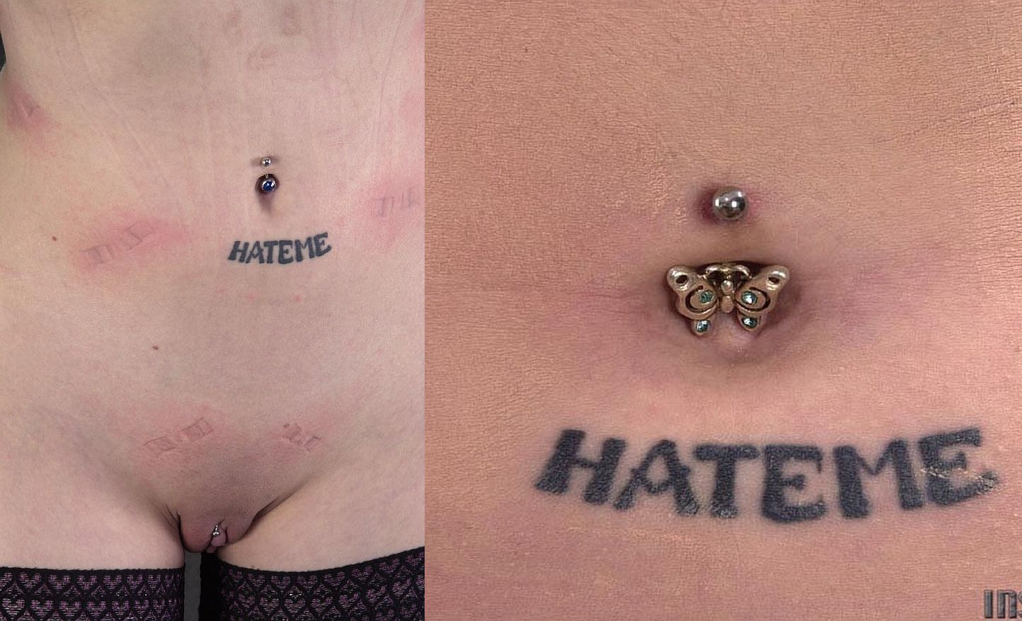 Great idea.hornythumb wrote: ↑Tue Jan 16, 2024 2:06 pmUse wulf's scraper to remove HATE, and then make it read FUCKMEEdukator wrote: ↑Tue Jan 16, 2024 10:25 amYes indeed, very explicit:localroger wrote: ↑Mon Jan 15, 2024 8:46 pm Yeah Edukator that's Insex model Inez. I have that video. While she doesn't have a lot of ink, she does have a small tasteful (?) tattoo beneath her navel that reads HATE ME. So I suspect she has some issues going on that go beyond the usual motivations, and it's at a level that is very distracting.