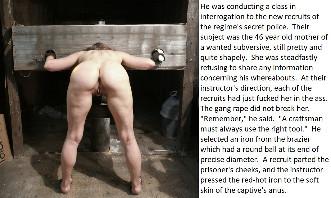 Like very much.Harry45255 wrote: ↑Thu May 09, 2024 5:08 pm They had been betrayed and the secret police had apprehended them. Now she would feel the lash, but the worst torture by far was hearing the frenzied screams as the first interrogator began to anally rape her mother.