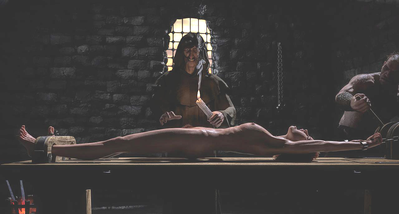 Victoria S anyone? A bikini model crying out to be racked beyond recognition in a medieval setting.