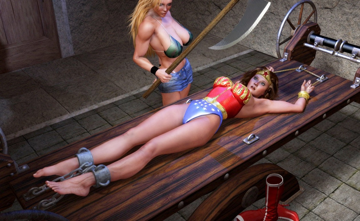 This nice piece of artwork (artist unknown, sorry) makes me think of Christina Carter, who did quite a few Wonder Woman in bondage scenarios.