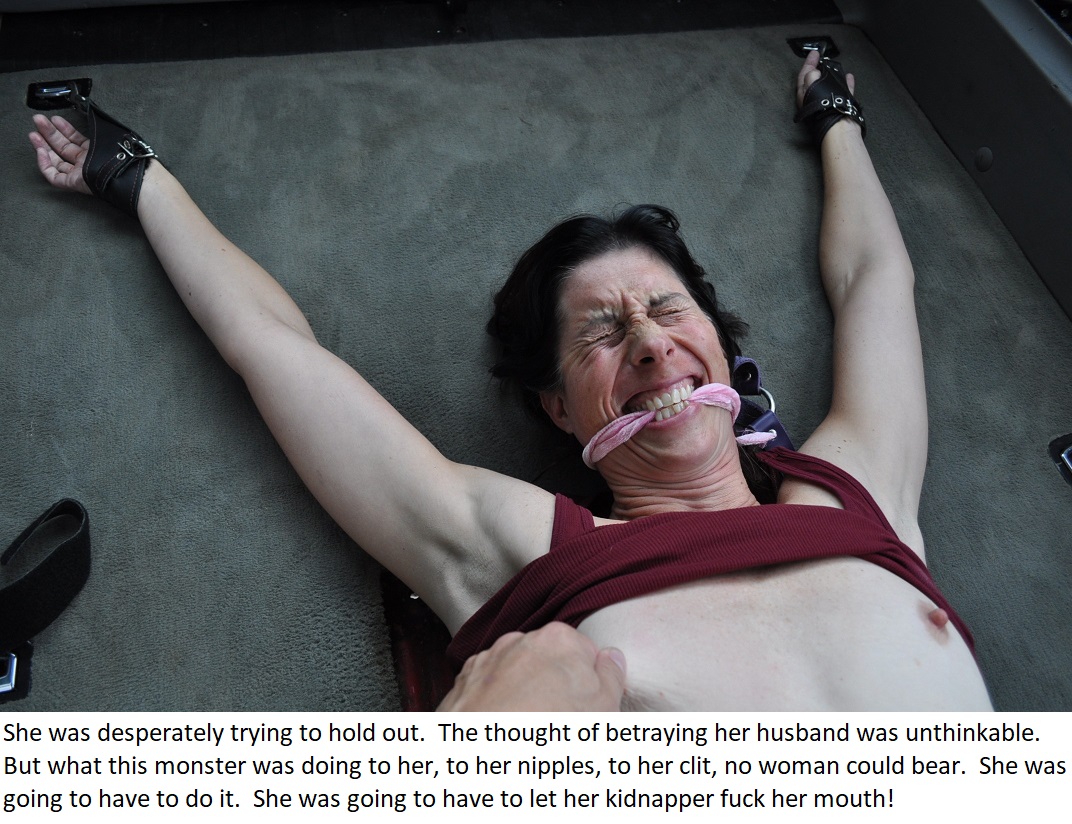 The kidnapped soccer mom ran outside, her tits & pussy still burning from the lash. It was part of his game to allow her to think that he had inadvertently left the door ajar. He'd let her run for a while, desperately looking for help that was miles away. Then he'd bring her back to his basement to continue the session.