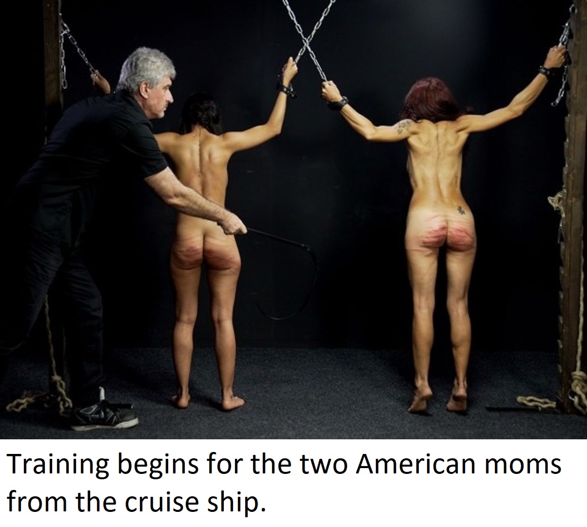 The two American MILF's from the cruise ship were bathed in sweat from the trip in the trunk of a car. Their trainer hosed them off before beginning their conditioning.