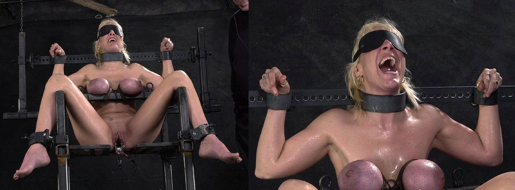 The next test was intended to test the subject nipples sensitivity to increasing electrical shock levels, with breasts put under strong mechanical pressure.