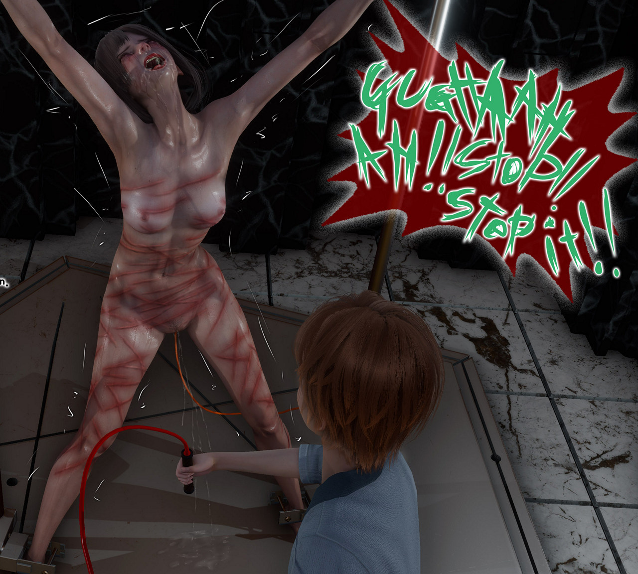 After 200 strikes. Limp body, bleeding back and exhausted girl.