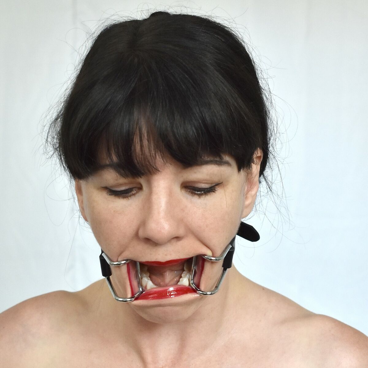 A few more metal mouth spreaders and unfortunate girls forced to wear them: