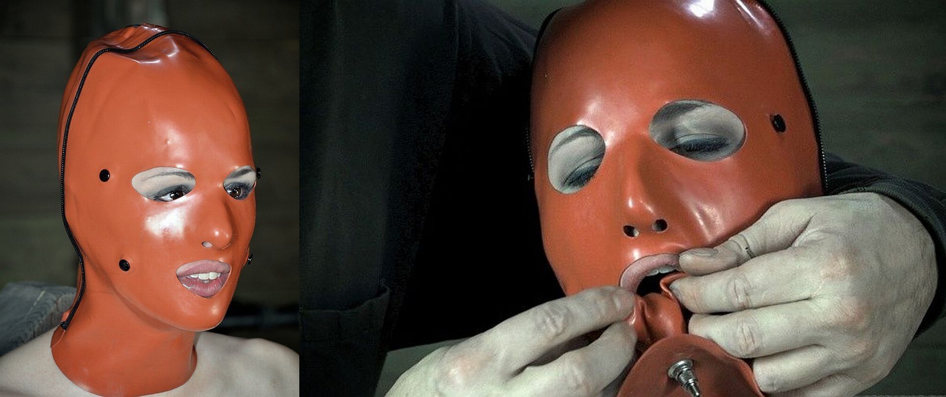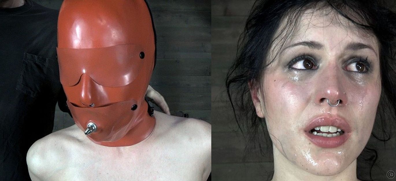 Maybe some remember this interesting scene from an old Realtime Bondage video (Katharine Caned 3) where the poor Katharine Cane was prepared by PD for an electro-torture session. He was in the process of fitting a full latex sensory deprivation hood including (inflatable) gag and blindfold. When he finished putting on the snap-on blindfold she suddenly went into some panic state and started to cry , PD immediatly noticed that something went wrong , removed the hood and tried to gently calm her. This scene was uncut and the session followed his course (albeit without the hood), with the brave Katharine having her cunt shocked by an electrified metal dildo . She was obviously more afraid of the hood than the cruel electro-torture she endured.