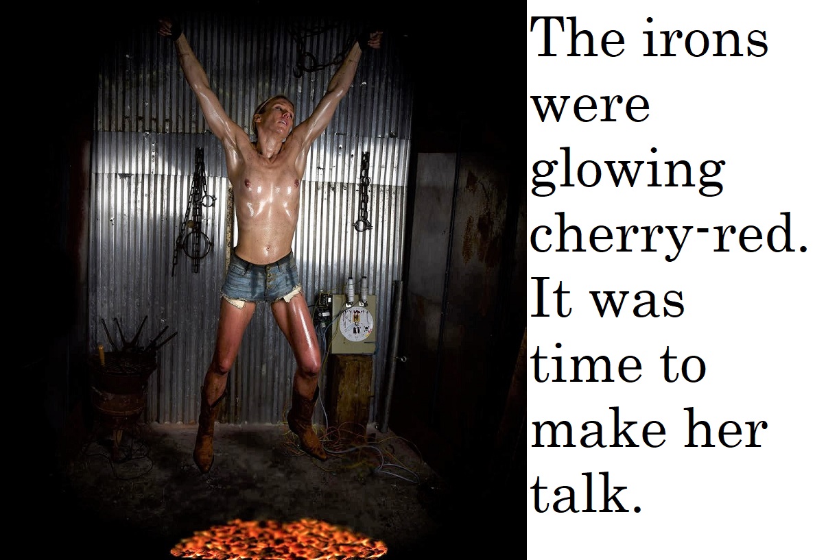 Even better, I’m thinking of that wire braid material that starts to get frayed eventually, with little bits of super sharp tiny gauge stainless steel wire that jabs your skin if you’re not wearing gloves. Imagine her entire back - or front! - laying on wire that’s all fraying like that. Just getting her secured to the platform and making her writhe around on it would be a horrible torture. Perfect.