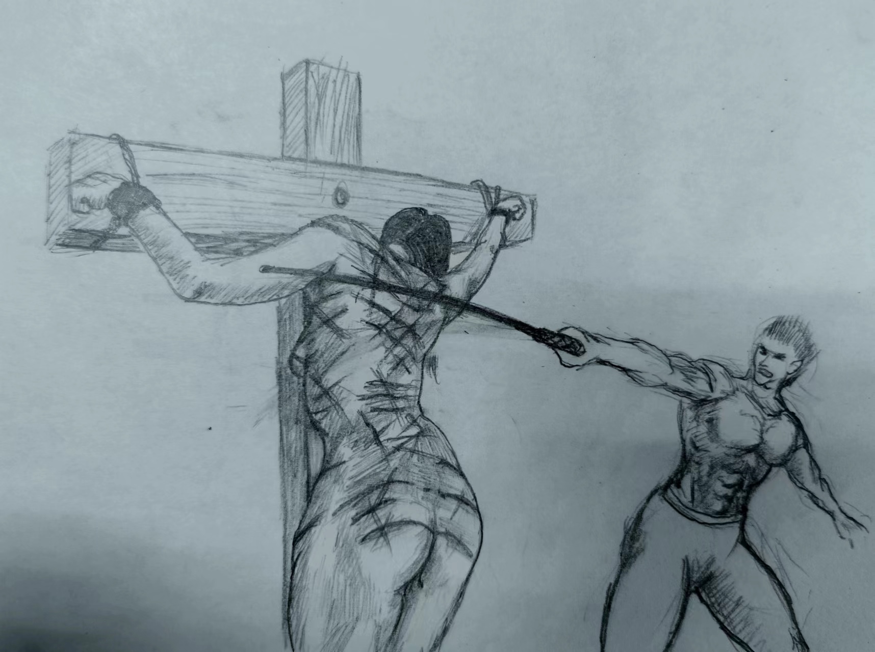 Another great drawing. You really are mastering the body motion and positions that should be there when being whipped and tortured. Well done, and thank you for sharing.