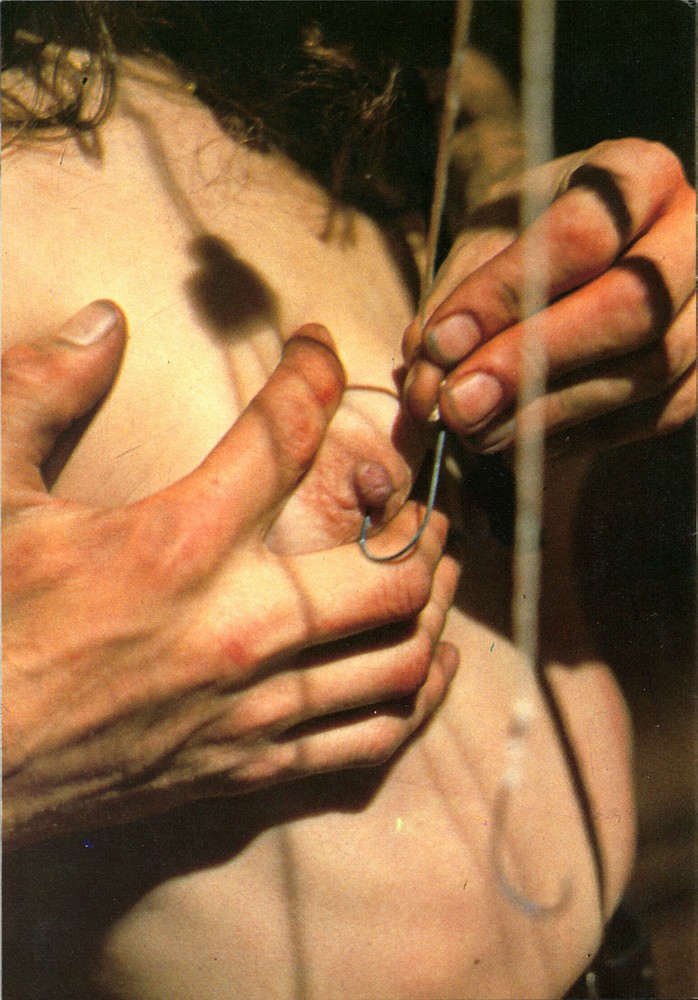 Here are some shots of a woman called (I think) Sybil Lake who was made to suffer terribly in Tourist Trap. This is my favourite scene where she's been hoisted up into a painful back-breaking arch via a cruelly positioned crotch rope....