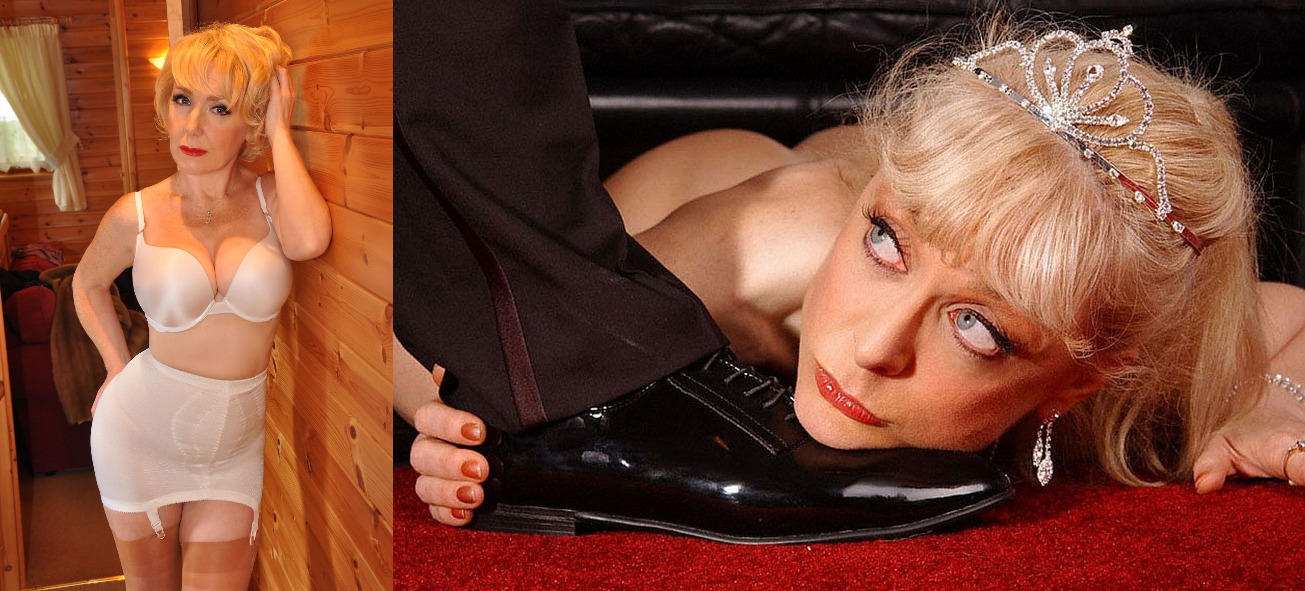 She's not fooling anyone. Licking the top of the shoe instead of the bottom doesn't cut it.
