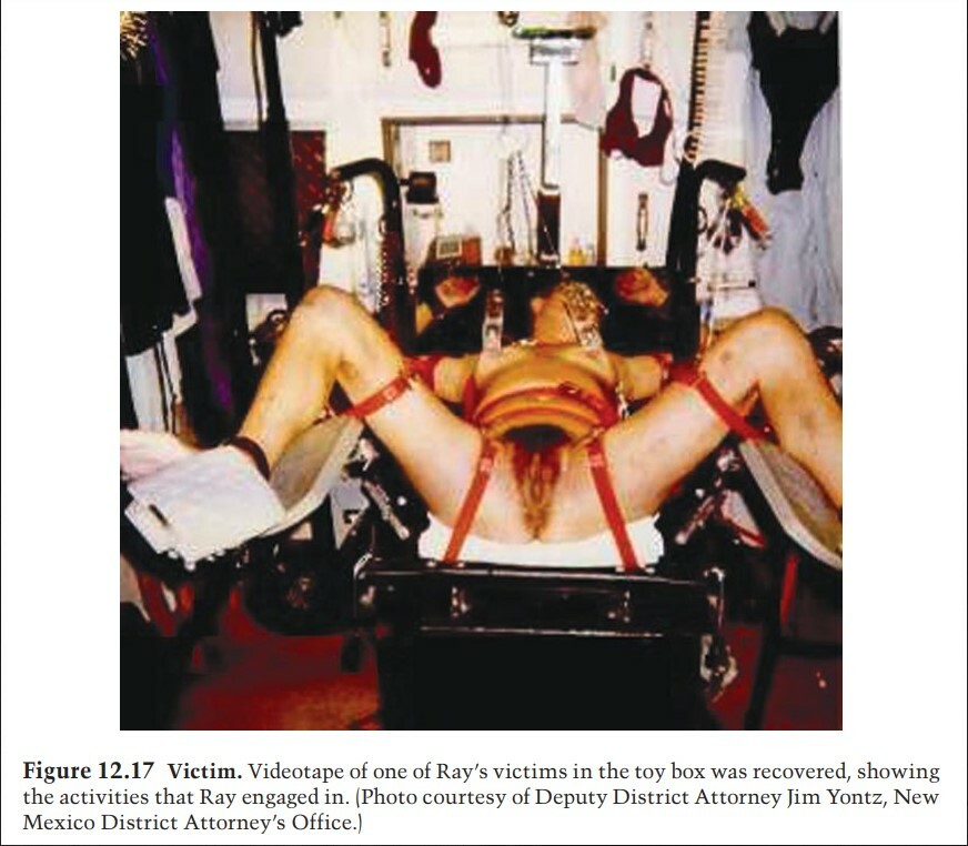 This included both physical and mental torture. After abducting a victim, he liked to play them a tape recording of his own voice. The recording detailed how they were going to be raped and abused in a soundproof "playroom". It also warned them that they would be whipped or shocked with an electroshock machine if they "got out of line". Ray got a perverse kick out of witnessing his victims' fear as they listened to the tape. It is believed that his sadistic tendencies stretched back to his early adolescence, as his estranged sister said he was drawing sadistic torture images by the age of 14.
