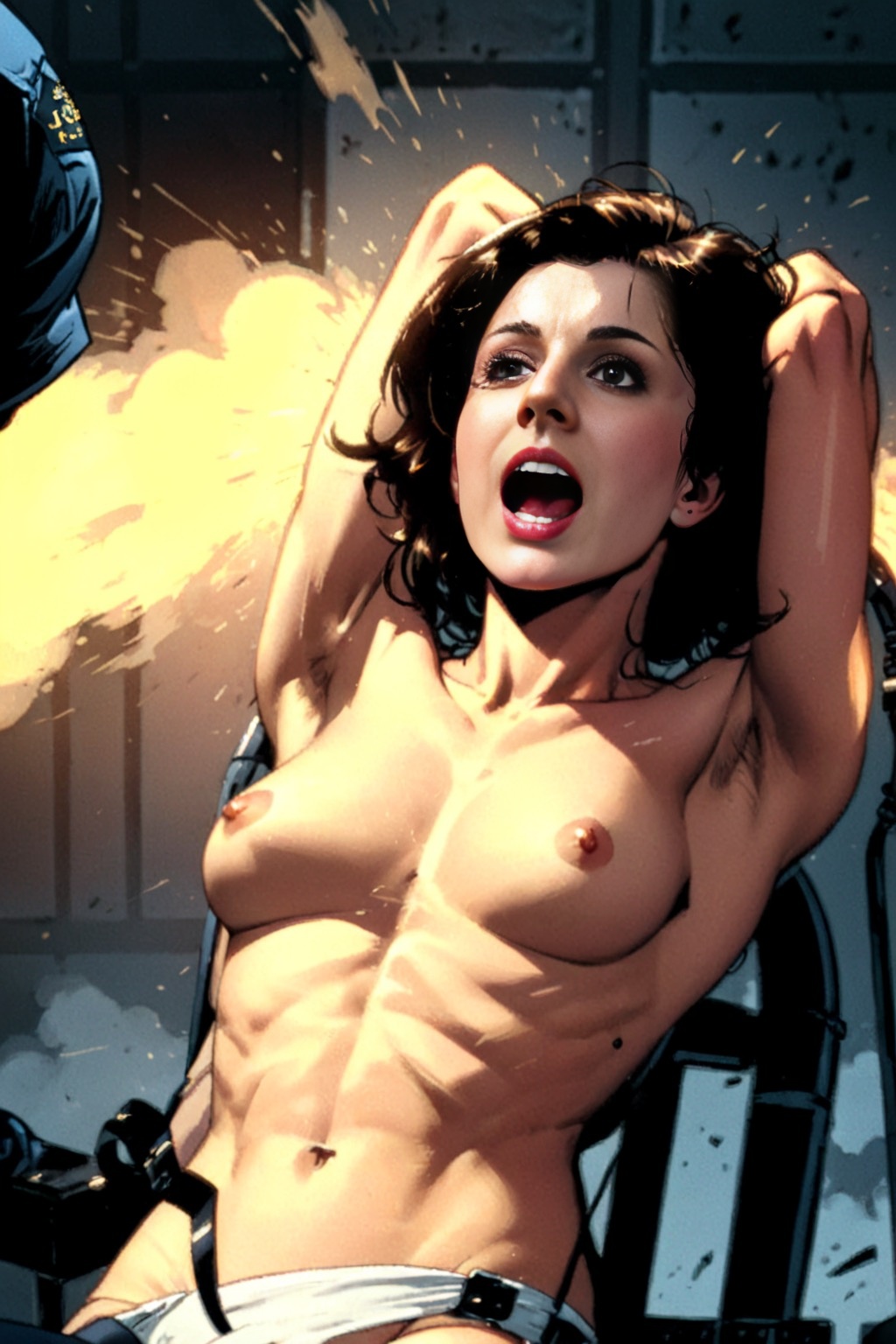 This one almost looks like my wife! Tits are smaller, but I think it not a problem for this guy to enjoy her body. Also, she always should be in chains, cuffed or tied up. Even if they are interrogating a loyal citizens, who knows what they can do to avoid pain?