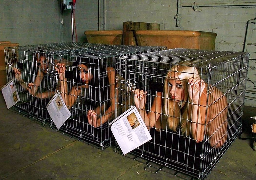 After undergoing a full medical examination and the completion of export customs forms declarations the slaves are ready for shipping to their new owner abroad in an appropriate container: