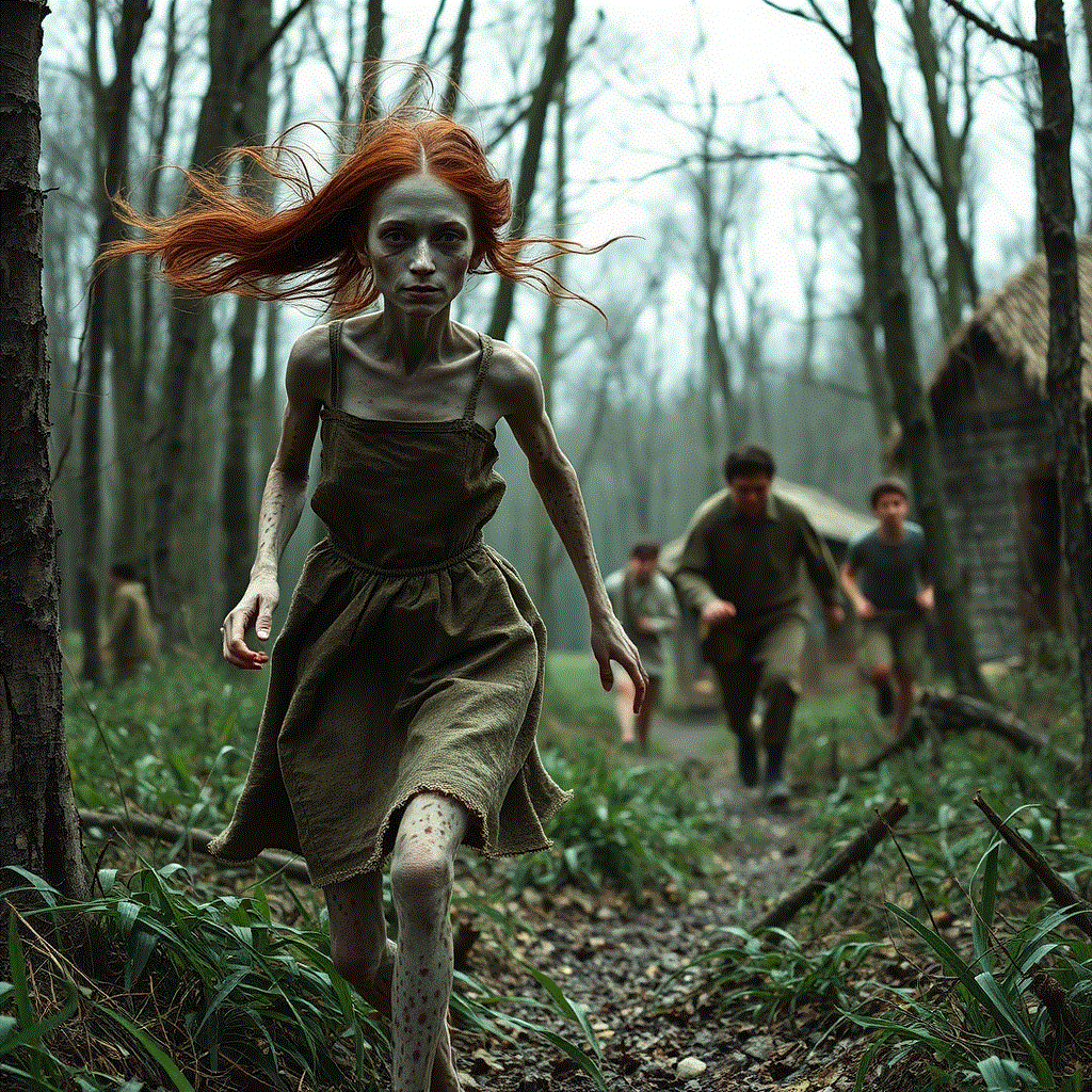 Weighed against the Church Bible. She must be stripped naked so that she can not hide any charms about her to cheat the test. Any of her fellow townswomen would have enough womanly curves to outweigh the heavy, iron bound tome. Not so the scrawny Gertraud. She shivers in the cold air as the entire village watches, laughing and pointing at her.