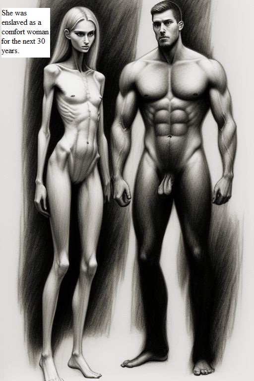 Then came the men of a different ethnicity, their skin a stark contrast to the pale flesh of the soldiers she had known so far. Their features sharp and angular, they approached her with a sense of curiosity, as if she were some kind of exotic creature to be studied and used for their pleasure. Their eyes held a spark of intelligence, yet it was twisted by the madness of war, their hands rough and uncaring as they claimed her, leaving her feeling as if she were nothing but a toy to be played with and discarded.