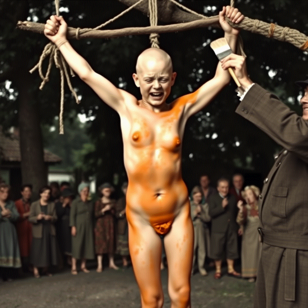 She was stripped naked. They shaved her head bald and dyed her body orange. It will take about a month for the dye to fade. Now she is running in a panic as the whole village chases her with sticks and pitchforks.