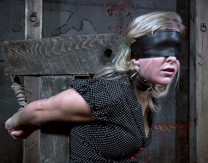 A blindfold adds so much to this picture. I can see her being led into the Showroom for other masters to observe her, and as she enters she whispers "Please don't let them hurt me."