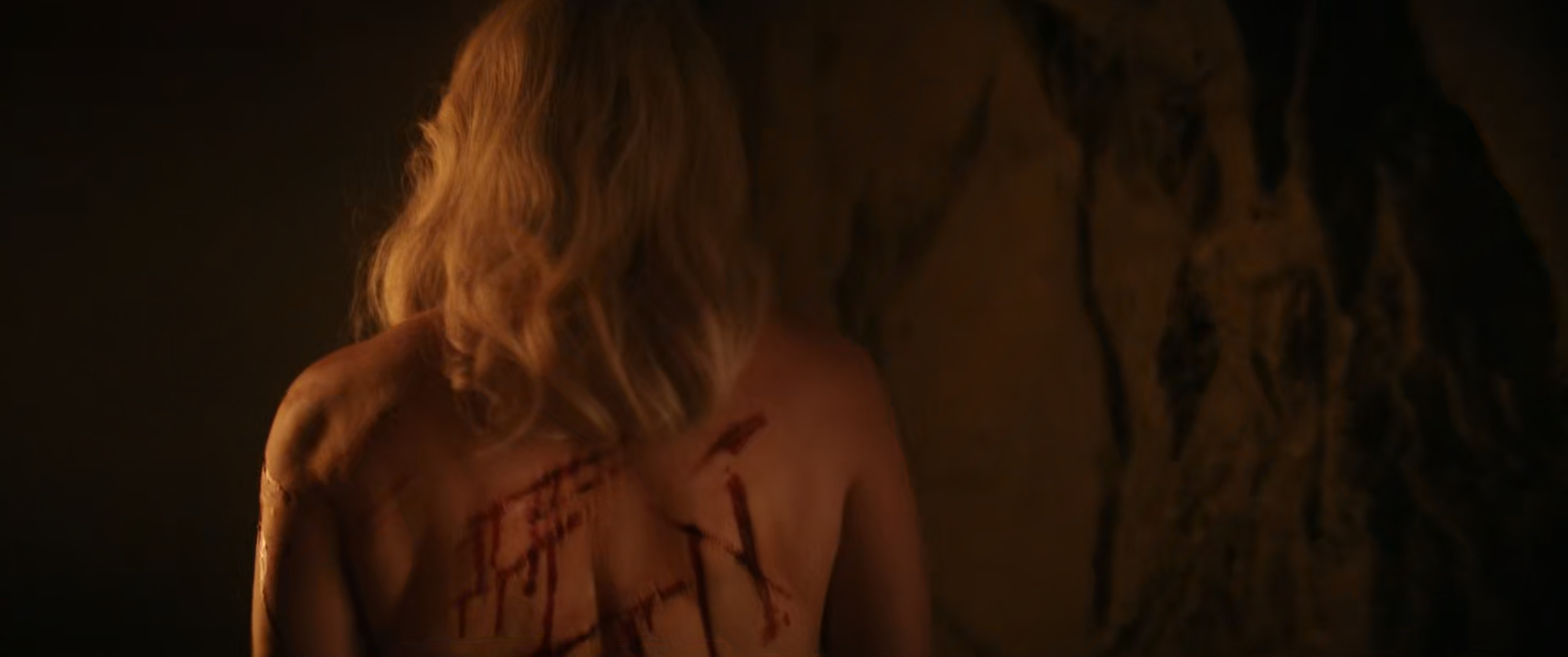 In this scene, a dressed woman is less than steady on her feet. It would appear that she has been whipped as we see some nice whip marks on her back, that would welt up nicely I think.