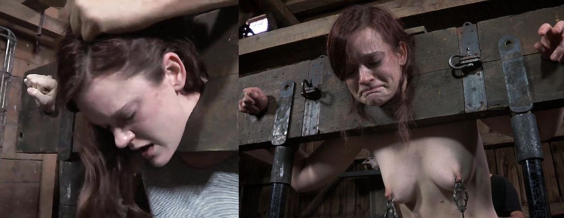 Love the anticipation. Would love to see this set in the village square. (less the clamps). Her holding the whip in her mouth adds to it.