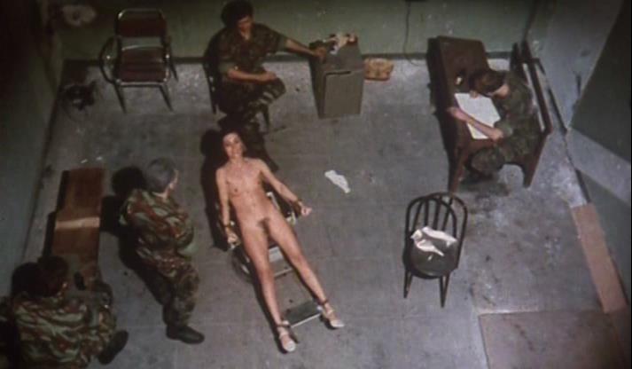 5) The camera - I'd like to think that she's a particularly high profile member of an anti dictatorship group. She's been singled out for punishment as an example to the other political prisoners - right now they're gathered in a communal room being forced to watch her ordeal!