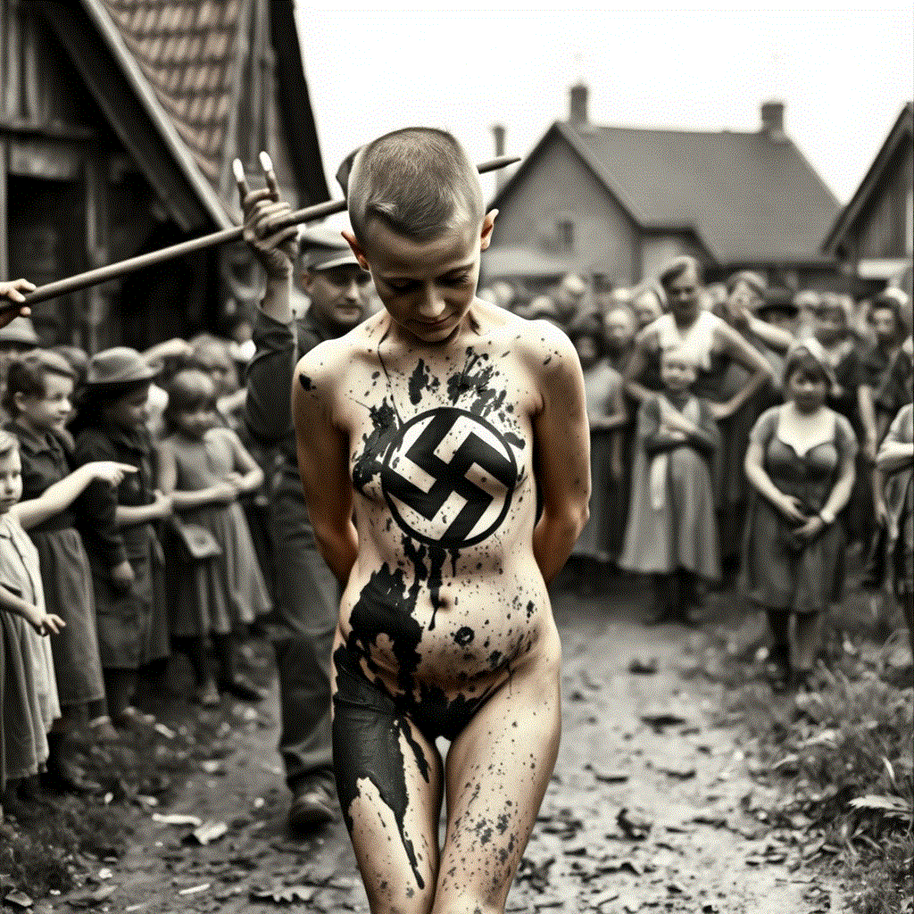 Some Dutch collaborators had their bodies covered with orange paint or dye, The Dutch national color.