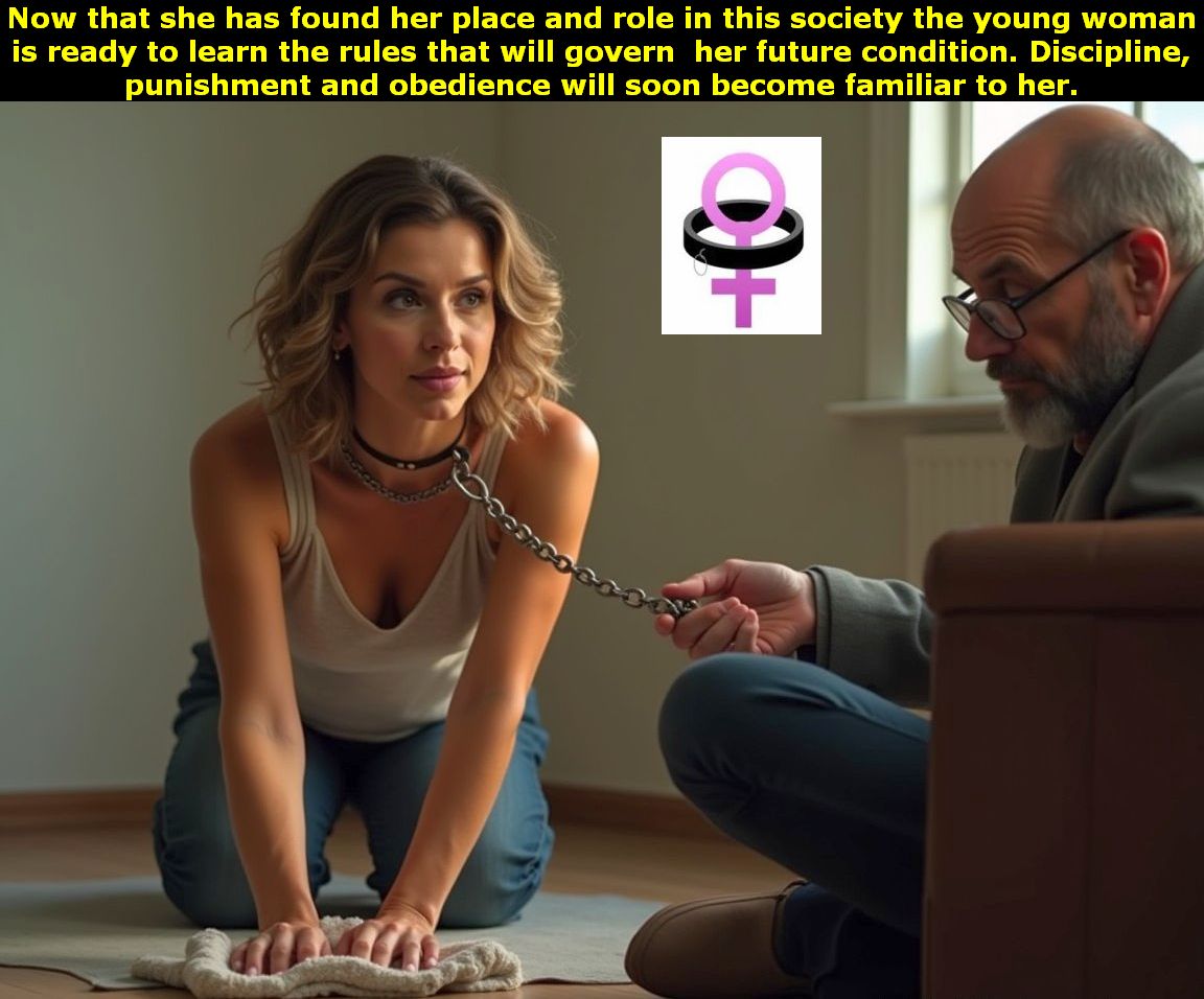 When a girl discovers her future role of submissive woman in our society she needs a guide and mentor to guide her and help the transition process. It must preferably a stern experienced elderly man.