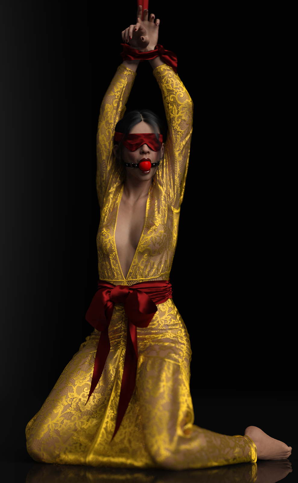 I play around with 3D art; well actually more playing with virtual dolls than art I suppose. I do a variety of themes according to my mood, but most are bondage/DiD related to various degrees.