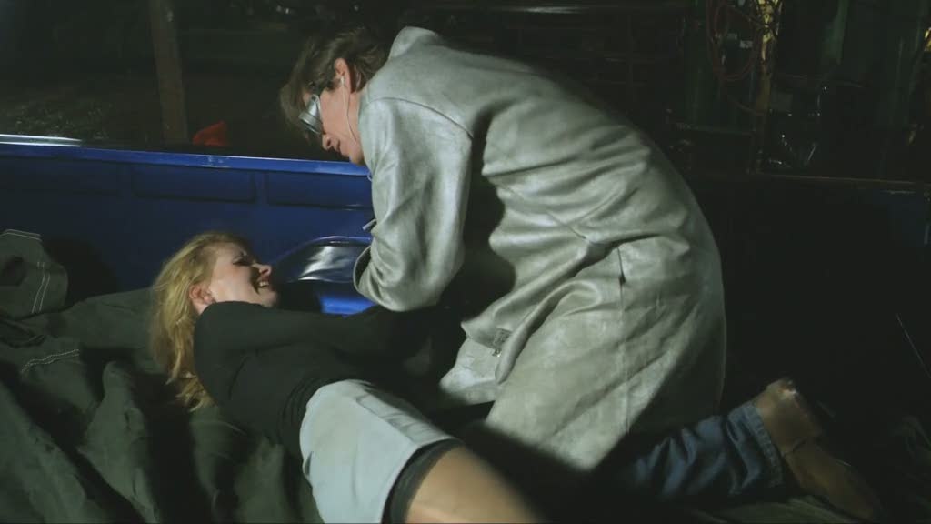 This horror-thriller was made in South Korea but with an American cast, as we follow the plight of Julia (Valerie Azlynn), who is trying to escape from her Internet Date from Hell, played by Kevin Sorbo. He corners her in an underground garage and ties her up in the bed of a flatbed truck. She screams in panic as she sees him fire up a blowtorch and heat an X-shaped brand until it’s red hot. Then she screams even louder as he jabs it into her right ass cheek, finally knocking her unconscious. He examines the red brand burned onto her butt, then pulls her shirt back down, and you can clearly see the mark through her clothing. An excellent mainstream scene made even better by the attractiveness of the lovely victim, and by Sorbo’s darkly comedic performance as the psychotic killer.