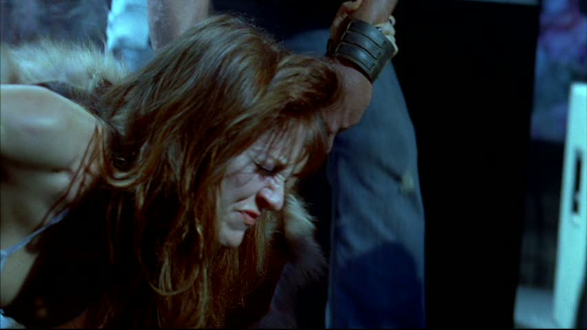 The second scene is part of a ritual ceremony, but even though it’s technically consensual, the woman (Brit Morgan) is still held down and does some major screaming while being branded on the back in front of a cheering crowd. A very impressive scene with lots of smoke flowing from the hot brand, and she is clearly in a great deal of pain.