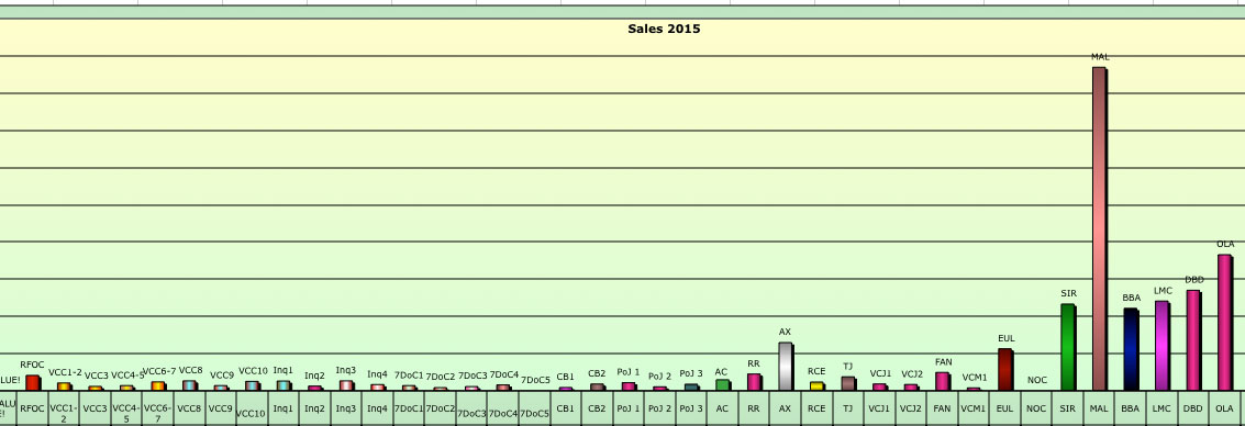 Daniel KATL Greetings, Just a couple of thoughts on 'Justine'! GREAT idea! Again, not so great the 'showboating' on this movie! Give us rope, whips, tools of torture, shackles, wooden props and the women! Leave the costuming and other extras to Disney. I believe 'Bring out the Gimp' has shown you its support time and time again! Just my thoughts! JUSTINE has costumes, and whips, and tools of torture, and props and lovely women, and extras to watch them because that's how good stories are told. One thought. I said that our days of Red Feline are over. In those days we had some costumes but no extras. The difference is that a nice, seemingly uncomplicated film like Agent X doesn't make as much as Sirwiñakuy and falls way below Maleficarum, an inquisition film with full costumes, extras and so on. A film that dwarfs everything we made, as you can see in the chart below. There you have all our productions in the market and how they are performing this year. Maleficarum is the big tower, followed by Olalla, Dead But Dreaming, Le Marquis, Sirwiñakuy, Barbazul and down below in a prominent place are Agent X and Martyr. Disney has it right, dress your set, get your prince in high regalia, and people will want to watch. We normally undress and torture the princess while everybody watches. (BTW, I think the showboating pushed the project up a bit more today)