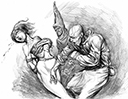 The creator of Execution by Mafia is known as Vampire, and I have come across only one other of his stories, a similarly extreme comic entitled Execution by Gutting. He's obviously a heavyweight GIMPer, and prefers traditional pen-and-ink over the 3DG used by the majority of peril artists these days. Except for folks drawing Japanese Guro/Ryona stories, only a few western talents like Zerns, Cagri, Silvio Dante (and some of the hamstrung DOFantasy roster) continue to work with non-digital media. I wish there were more.