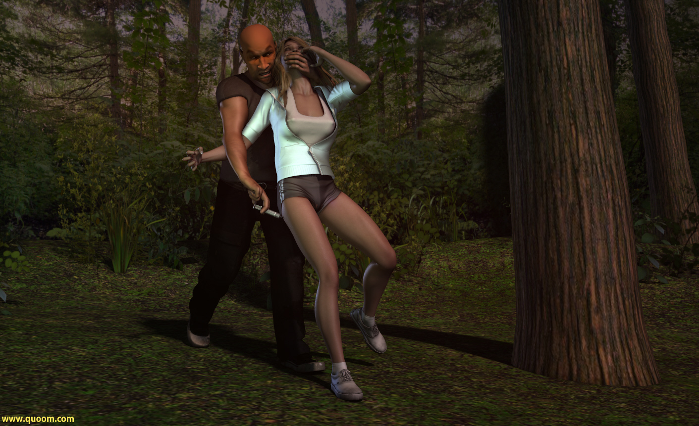 It actually proved quite easy. The park was nearly empty at dusk. He waited behind some bushes where the running path was nearest the parking lot. Yolanda was jogging slowly when she passed him. He leaped out, grabbed her and jammed a syringe into her leg. She struggled for only a few seconds before going limp. [See Yolanda Pic 1] He dragged her to his car, cuffed her wrists behind her back and threw her into the trunk. All in less than a minute.