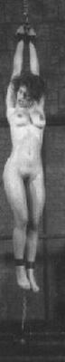 "You told me lies," the Duke screamed at her, released his grip on her hair, and stepped away, turning his back. The room quickly filled with the captive's screams, as the whip's blows attacked the most sensitive parts of her body. Across her breasts and thighs. When the Duke finally raised his hand and turned back to face his captive, she was hanging limply. Head down. Eyes closed. Mouth open. Chest panting. Entire body convulsing involuntarily.