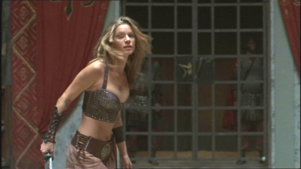 Camilla continued to stare back at him, her body still except for her strained attempt to control her breathing. Finally, feeling that he had given her enough time to choose otherwise, the general flicked his sword upward, first cutting through the leather cloth between her breasts, then the two shoulder straps. The bra fell to the ground.