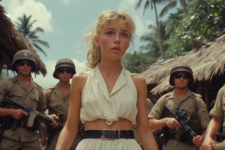 Camryn scrambled into the dense jungle fringe bordering the village, crawling beneath thick ferns and thorny vines. The humid air vibrated with the roar of landing craft hitting the beach. Boots crunched on gravel, harsh voices barked orders in a guttural language. Through the leaves, Camryn saw soldiers fanning out – efficient, brutal. They kicked in doors, overturned baskets, searching for anything left behind, anyone hiding. She pressed her face into the damp earth, trying to vanish. A sharp crack echoed – a stray branch snapping under her knee.