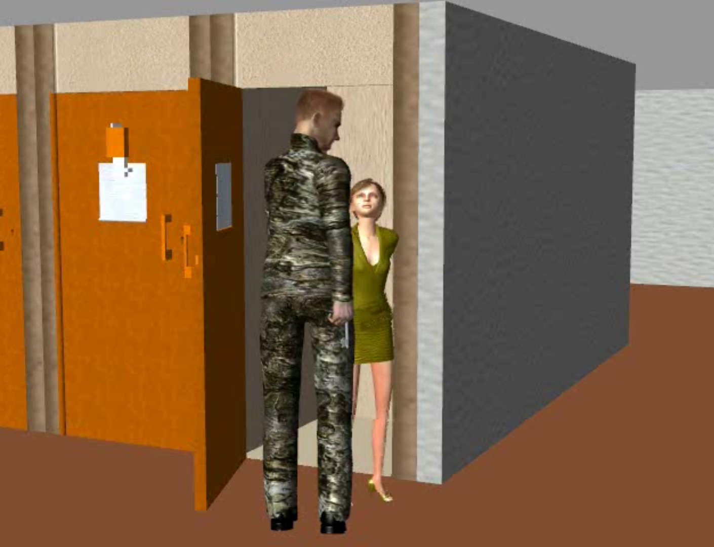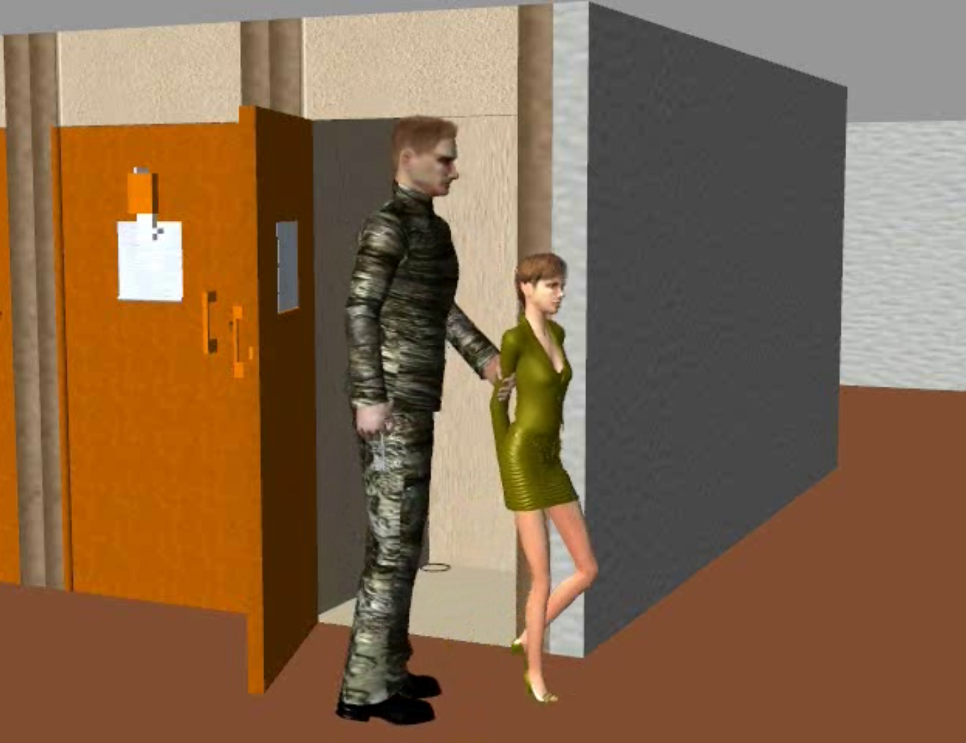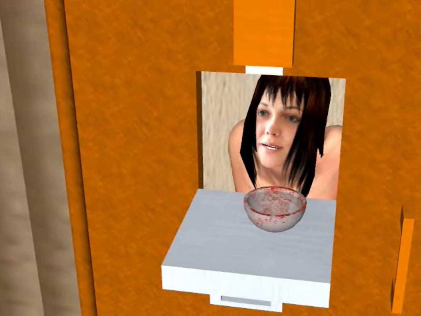 More of 'Waiting Attention.' With her hands tied, she cannot get the water.... so he raises the hatch. Oops that did not help.